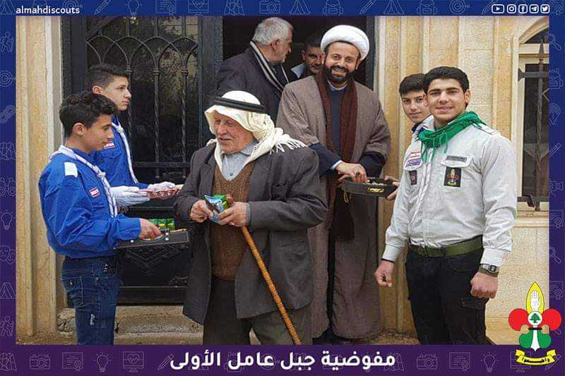 توزيع حلوى على المصلين في المسجد بمناسبة ولادة السيدة الزهراء (عليها السلام) في فوج الإمام الخميني (قدس الله سرّه)/ عيتا الشعب في قطاع قانا.