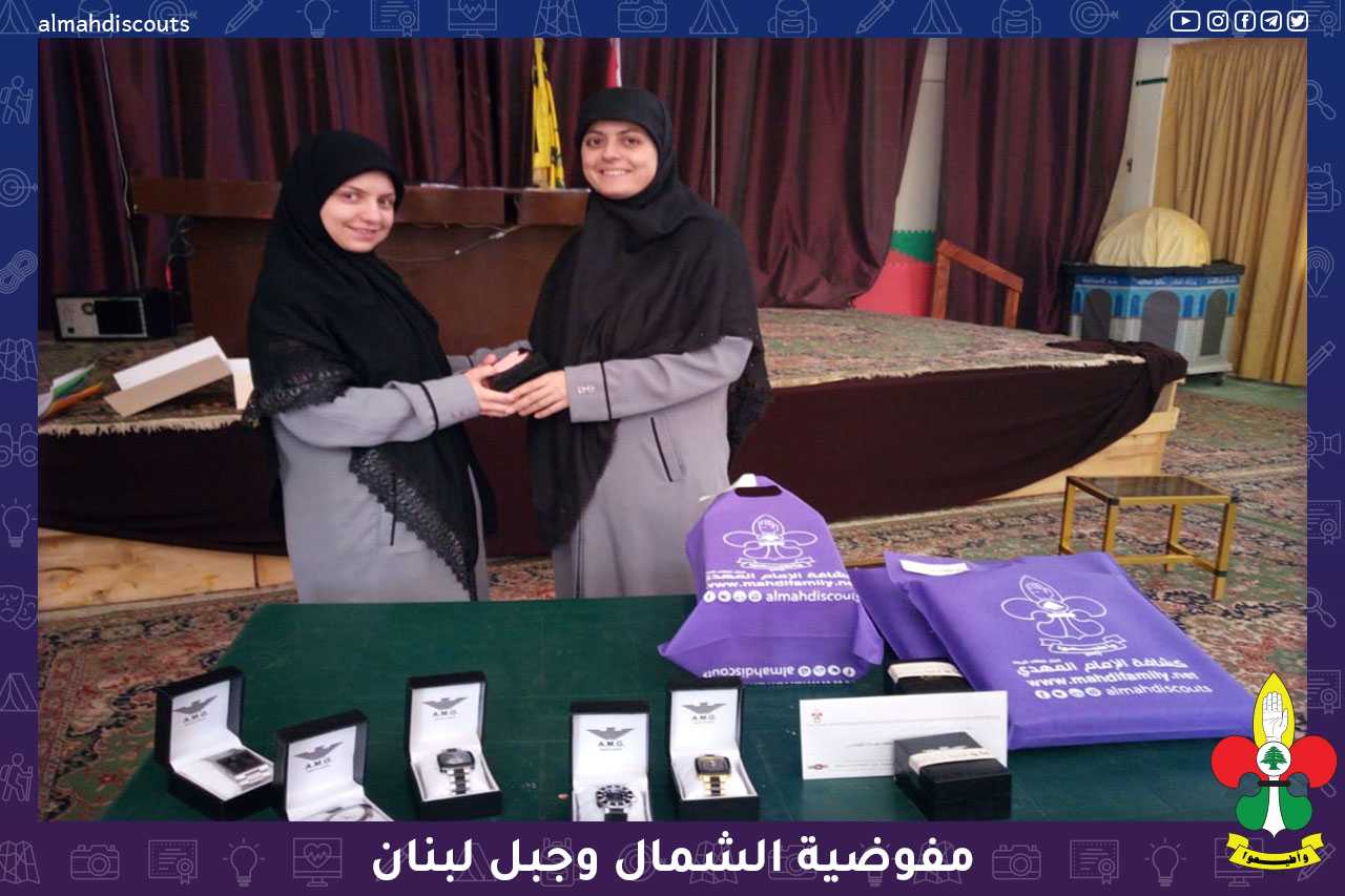 بمناسبة ولادة السيدة الزهراء عليها السلام ويوم القائدة في جمعية كشافة المهدي عليه السلام كرمت مرشدات قطاع الشمال الاخوات القائدات في القطاع بلقاء جمعهن في ديوان الثقافة في بلدة بنهران وتم تقطيع قالب حلوى وتوزيع لهدايا بهذه المناسب