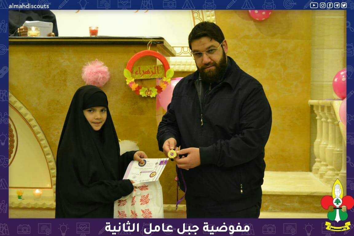 نشاط أفراح للكشفيات في فوج السيّدة سكينة (ع)/المروانية في أجواء الولادة المُباركة للسيّدة فاطمة الزّهراء -عليها السّلام، تخلّله تكريم الزهرات والمرشدات المشاركات في مشروع نجمات البتول (ع) للعام الماضي.