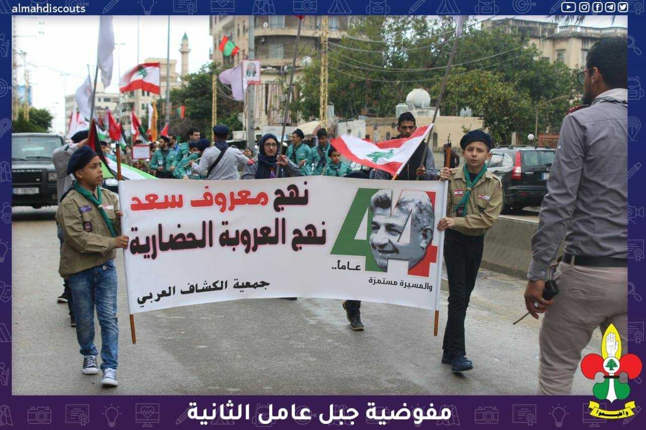 شاركت الفرقة الموسيقية التابعة لفوج الإمام الحسين (ع)/مشغرة وفرقٌ كشفية من قطاع الإمام العسكري(ع)/صيدا مفوضية جبل عامل الثانية، في مسيرة الوفاء للشهيد معروف سعد في مدينة صيدا.