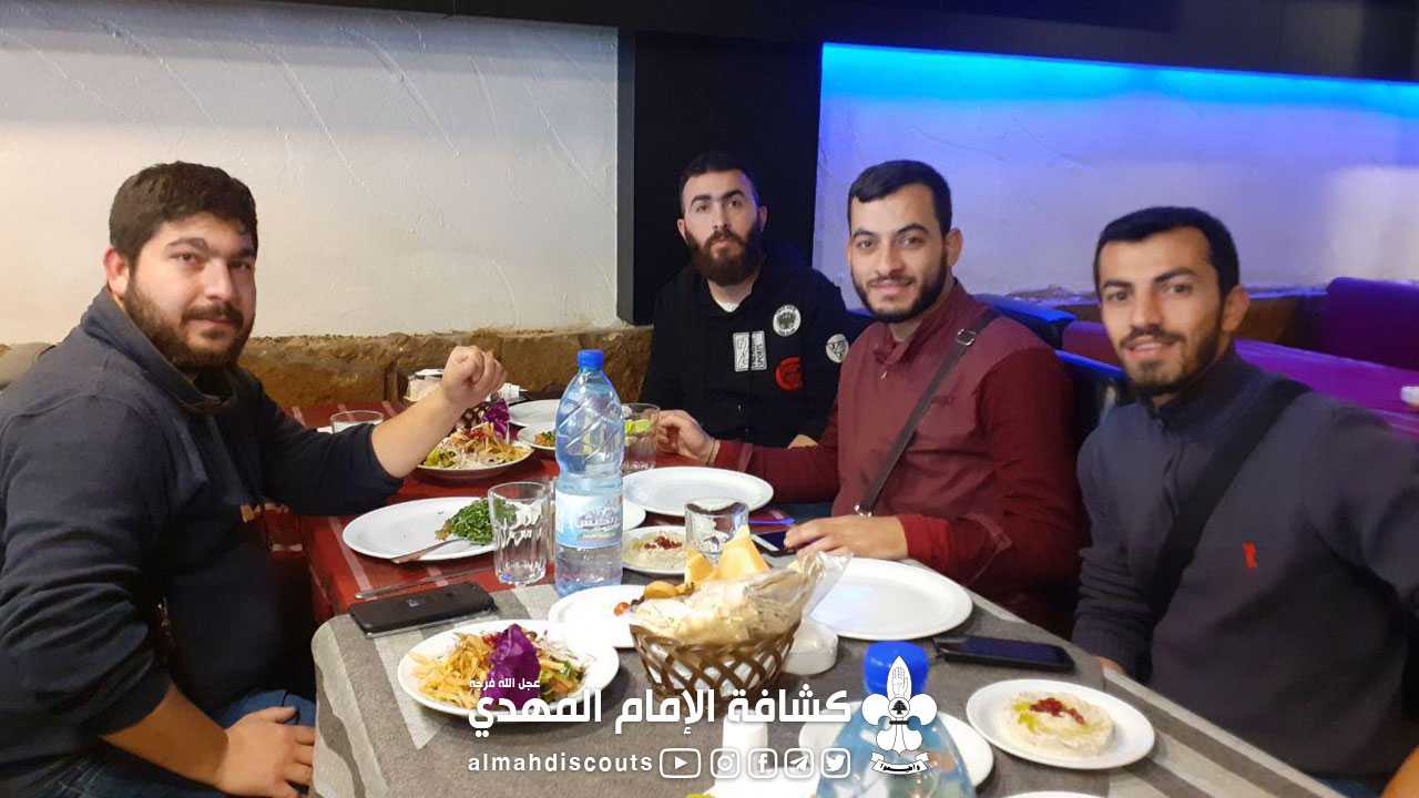 تلى الزيارة، غداء تكريمي للفريق، كان للمسؤول الرياضي في الجمعية كلمة مقتضبة فيه، أثنى فيها على جهود الشباب الفعالة التي أوصلتهم الى المركز الأول. ليتوجه الجميع بعدها إلى الشام القديمة، حيث جالوا في أسواق الشام القديمة خاتمين رحلتهم بزيارة السيدة رقية (عليها السلام).