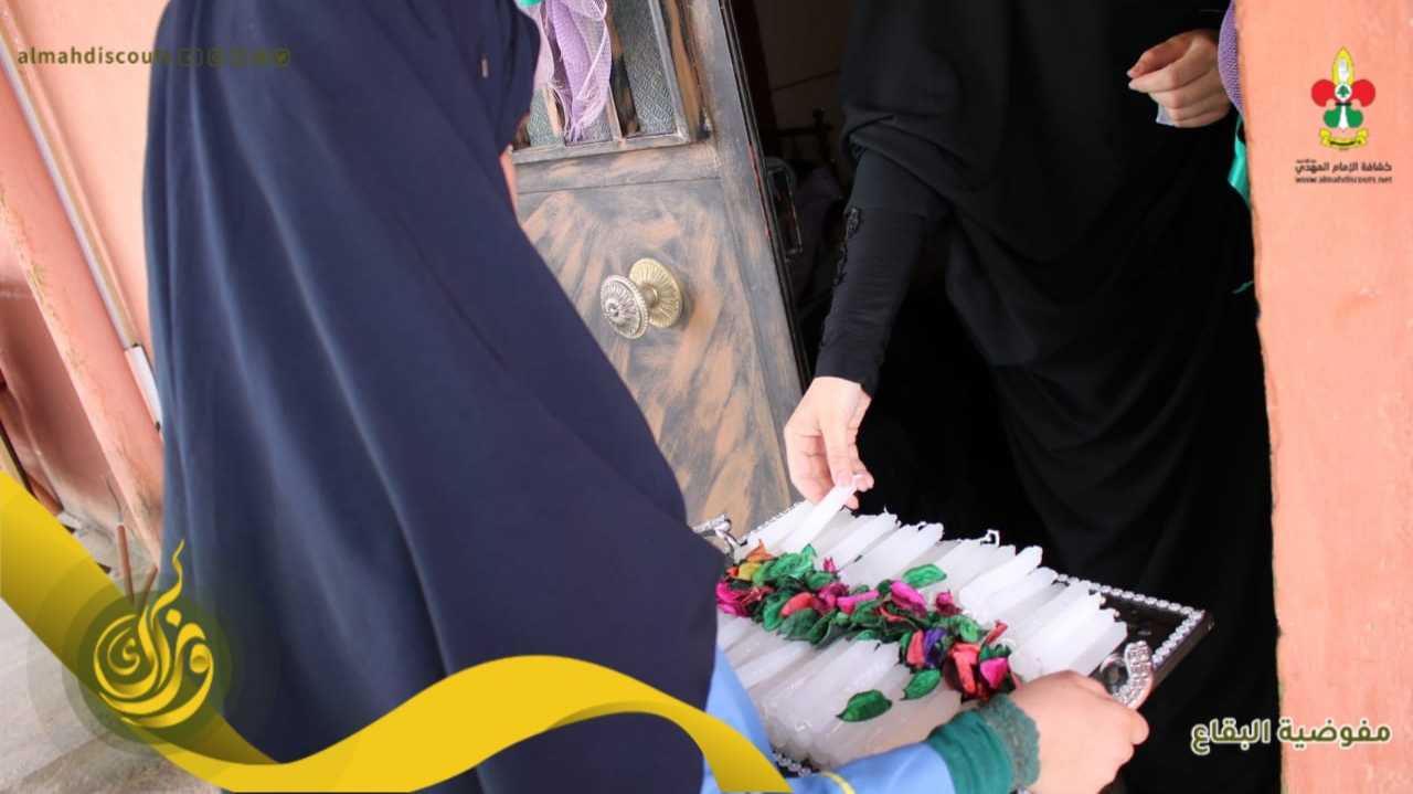 على حب الإمام المهدي وزعت كشفيات فوج السيدة زينب/ نبحا/ القطاع الشمالي الشموع على المنازل لإضاءتها ليلة الميلاد المبارك وليدخلن الفرحة على قلب صاحب العصر والزمان