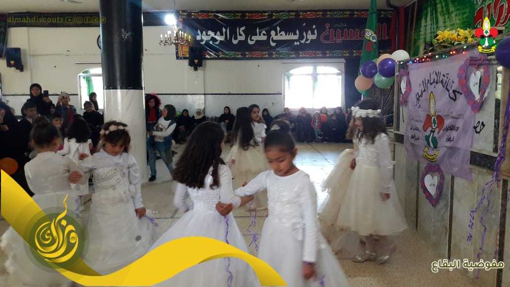 في أجواء ولادة الإمام المهدي عجل الله تعالى فرجه، نظم فوج ام البنين/ النبي عثمان/ القطاع الشمالي احتفالاً تنوعت فقراته، وبحضور مسؤولة الهيئات النسائية في البقاع وأمينة المرشدات في القطاع الكشفي وأهالي الكشفيات كان الإفتتاح بمراسم تعظيم للقرآن الكريم، بعدها فقرات فنية وأناشيد، لتنتقل الحاضرات الى رحاب نجمات البتول مع التعريف بالمشروع واطلاق مشروع الأربعون صباحاً، لتثني بعدها راعية الحفل على جهود كشافة المهدي في بناء الجيل الممهد للظهور الشريف وكان الختام بمولد وتوزيع الحلوى على حب الإمام