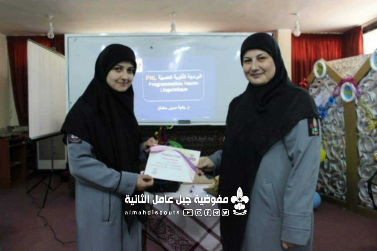 من ضمن سلسلة الورش التي استهدفت القائدات في مفوّضية جبل عامل الثانية خلال عطلة فصل الربيع، شاركت 40 قائدة من مختلف أفواج مفوضية جبل عامل الثانية بورشة تدريبية حملت عنوان "البرمجة اللغوية العصبية" قدّمتها لهنّ المتخصّصة في التنمية وإدارة الموارد البشرية الدكتورة بادية سرور، وفيها تعرفن على كيفية إنجاز الأهداف الشخصية بشكل فعّال وتنمية المهارات والقدرات وبرمجة العقل الباطني، واختتمت بتقديم هدية رمزية للمدرّبة وتوزيع الإفادات على المُشاركات.
