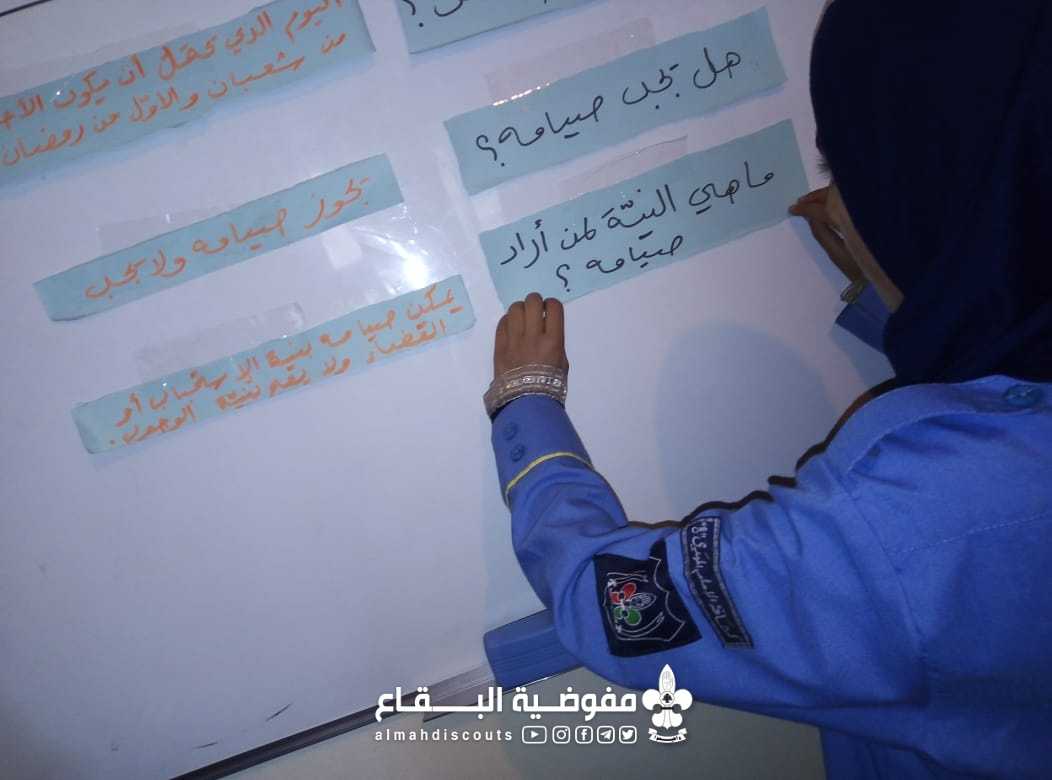 استقبالاً لشهر الرحمة تجمعت زهرات ومرشدات فوج السيدة الزهراء/ حزرتا/ القطاع الاوسط للمشاركة بورشة "كتب عليكم الصيام" بجو حماسي تداولت الفتيات المفكرة الرمضانية وتم جدولة برنامجهن الخاص..ليكون مسك الختام توزيع افادات المشاركة بمشروع الأربعون صباحاً..