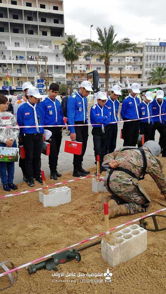 مشاركة كشفيو فوج الإمام الجواد (عليه السلام)/ صور في النشاط الذي نظمته الهيئة الصحية الإسلامية والجيش اللبناني في اليوم العالمي للتوعية من مخاطر الألغام ومناصرة الضحايا وتخلل النشاط مناورة حية للجيش اللبناني وجولة على معرض صور وتوزيع هدايا على المشاركين وذلك في مدينة صور.