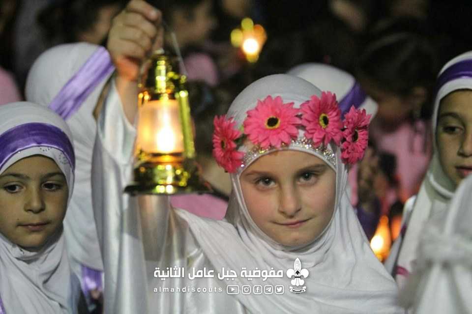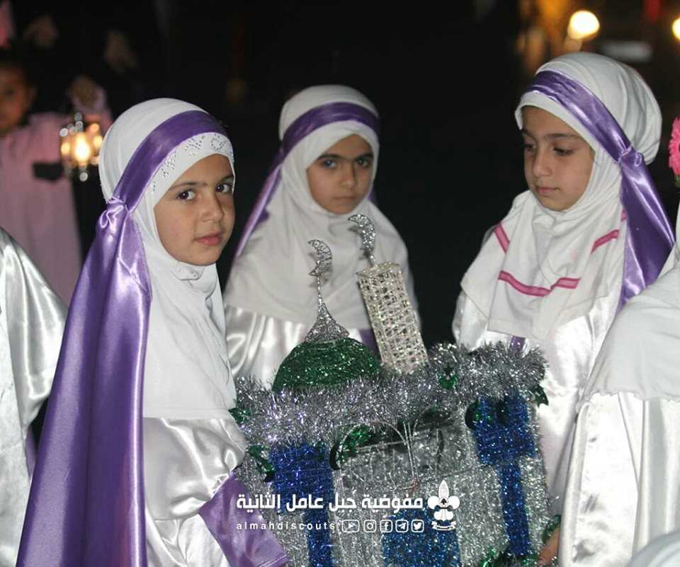 مسيرة إستقبال شهر رمضان المبارك، للكشفيات في السيدة أم البنين (ع)/عدلون.